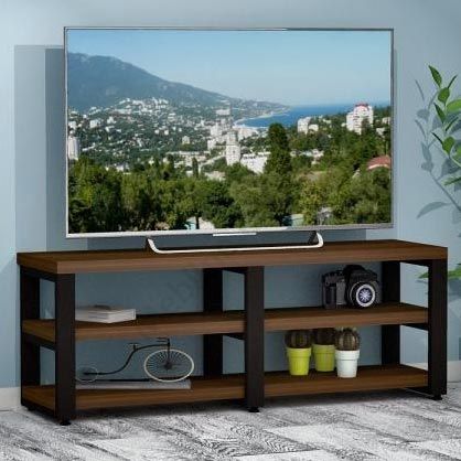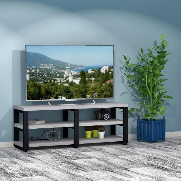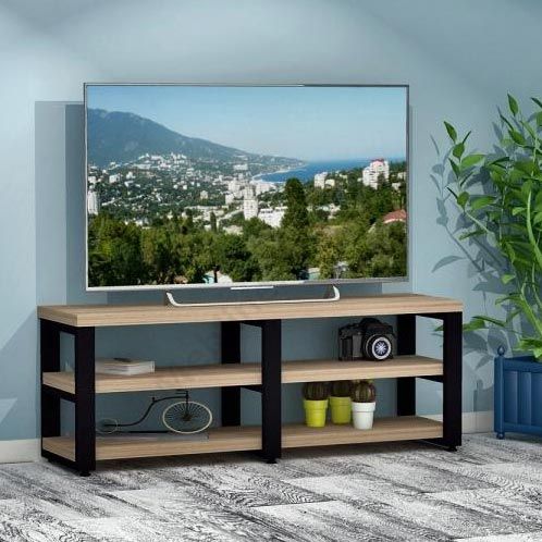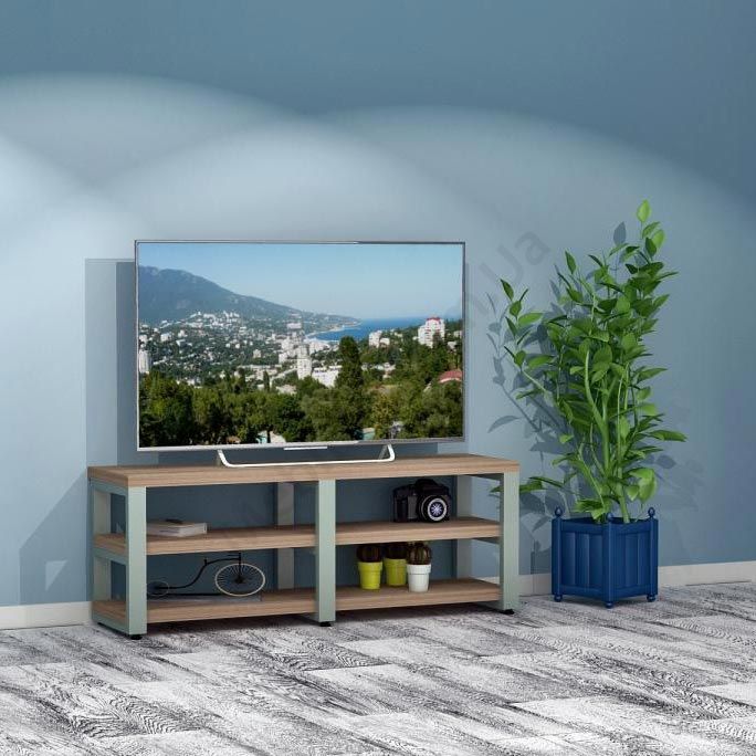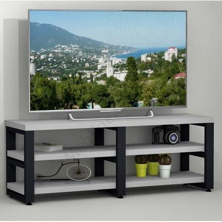 Тумба під телевізор у стилі лофт з відкритими полицями.