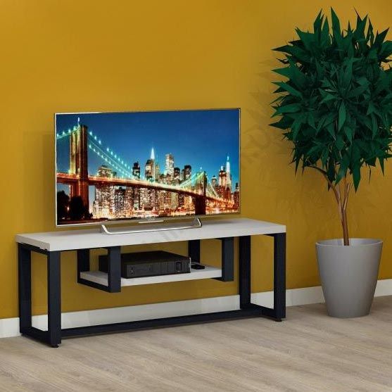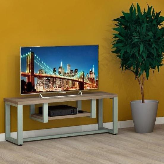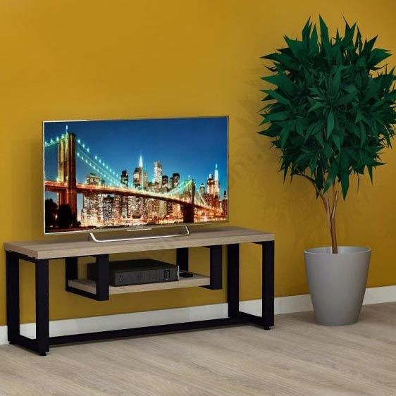 Тумба під телевізор у стилі лофт з відкритою полицею.