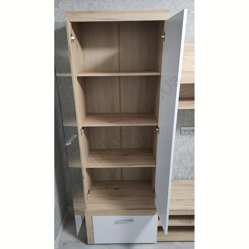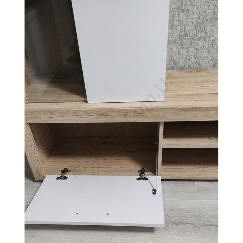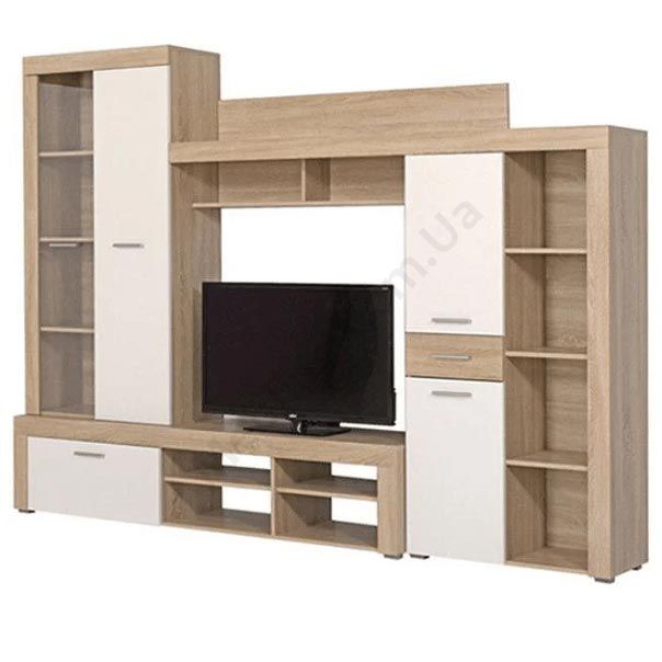 Стінка у вітальню з вітриною, стелажем та тумбою під телевізор.