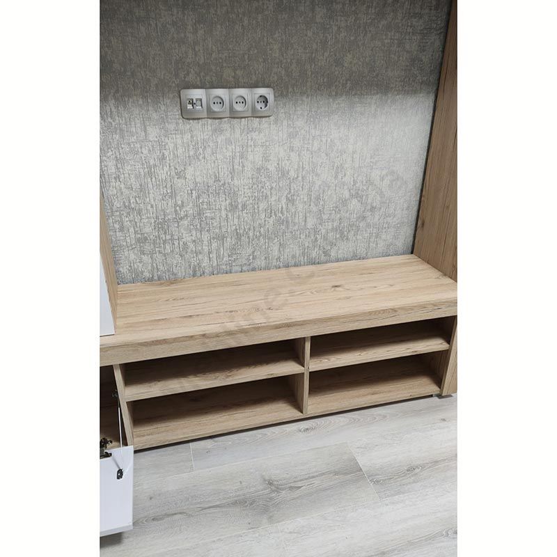 - Стелаж з двома дверцятами, висувною шухлядою і чотирма відкритими полицями.
