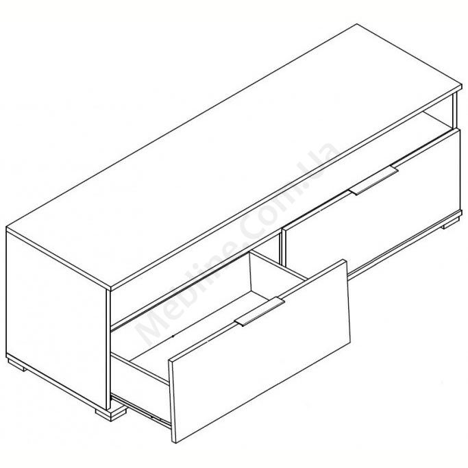 Тумба під телевізор з висувними шухлядами та відкритими нішами.
