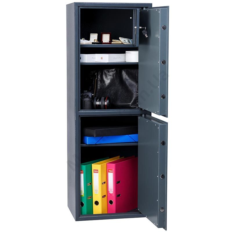 - За дверцятами знаходяться дві знімні переставні полиці та трейзер для зберігання цінностей.
