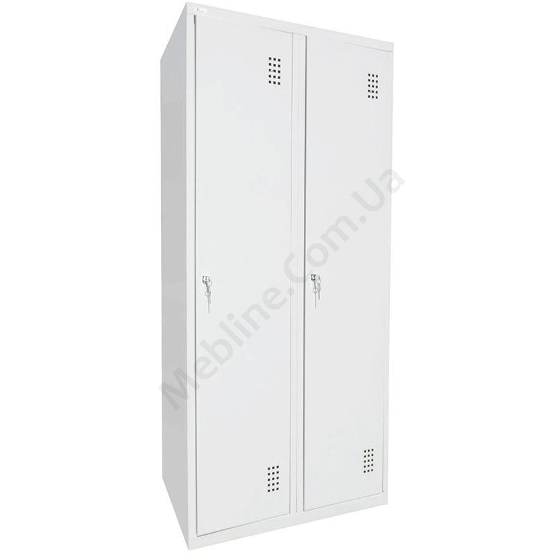 Металева двосекційна шафа для одягу.