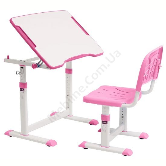 Зростаюча парта зі стільчиком білого з рожевим кольору.