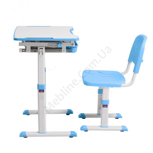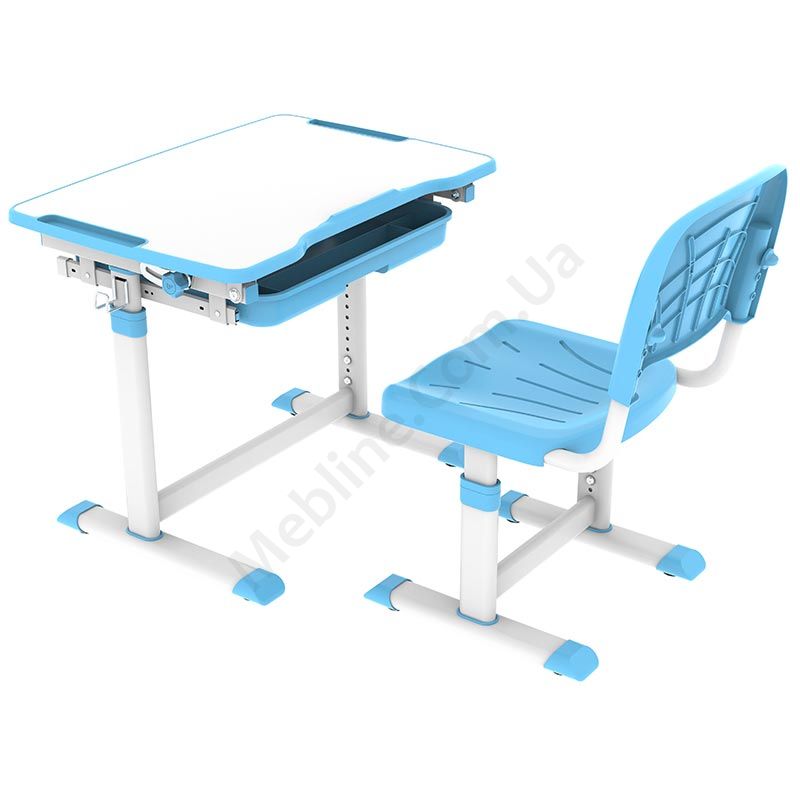 Зростаюча парта зі стільчиком білого з блакитним кольору.