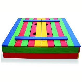 Дерев’яна дитяча пісочниця квадратної форми з кришкою.