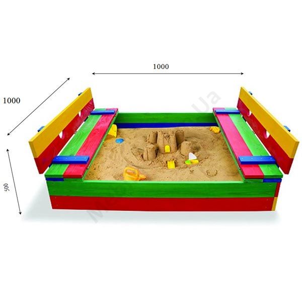 - Кришка пісочниці складається в дві лавки зі спинкою.
