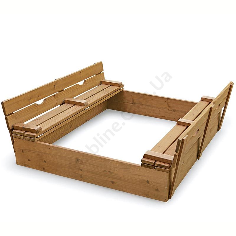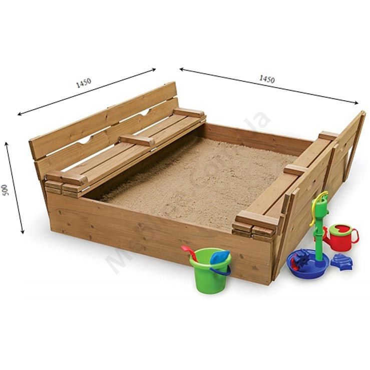 - Кришка пісочниці складається в дві лавки зі спинкою.