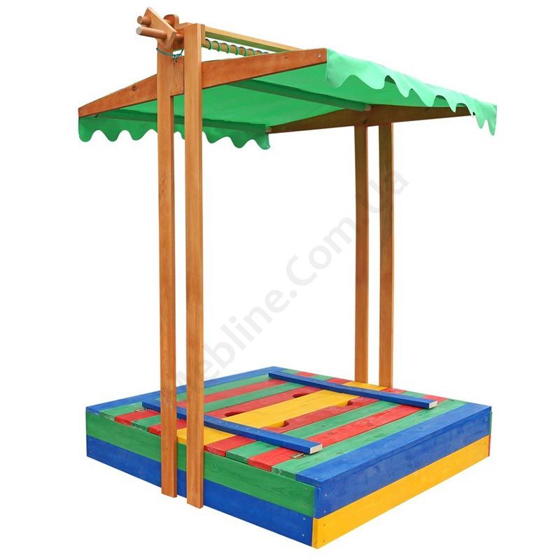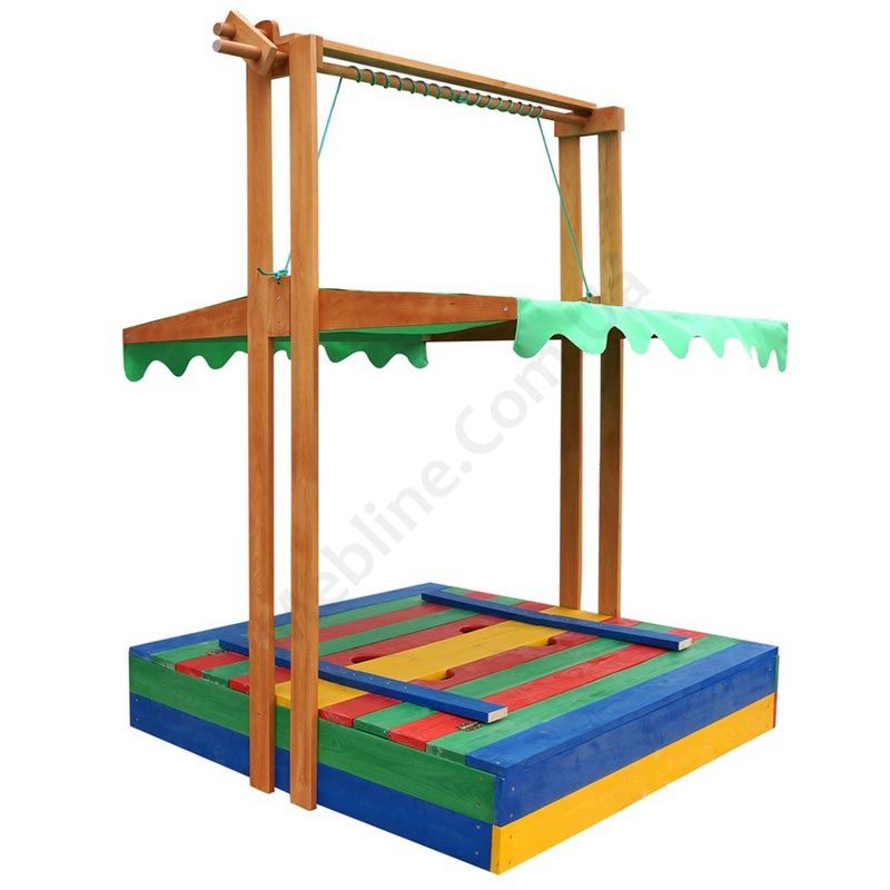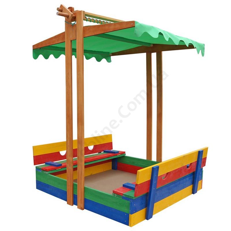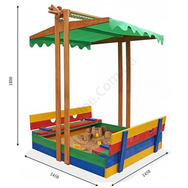 - Кришкою для пісочниці може слугувати як тентовий дах, так і розкладні лавки.