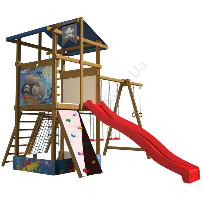 Дитячий ігровий комплекс для вулиці з гіркою, гойдалками та лазалками.