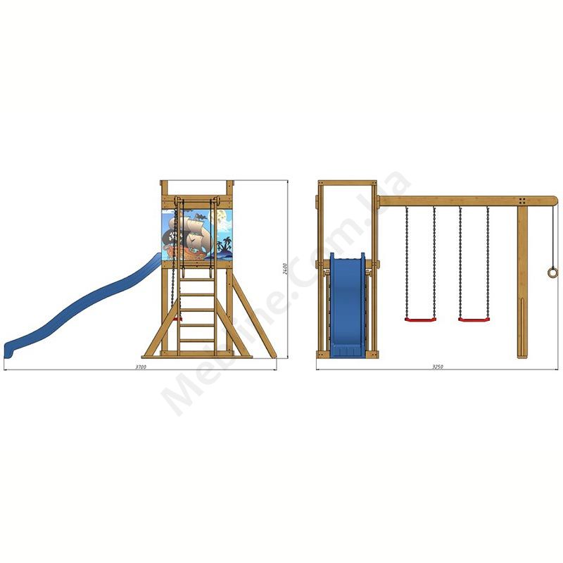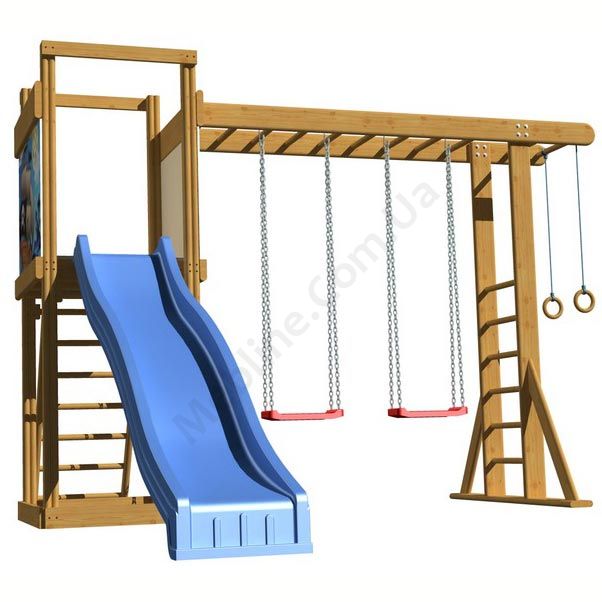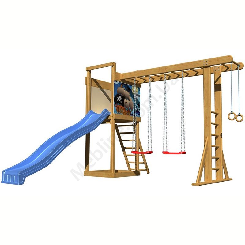 Дитячий ігровий комплекс для вулиці з гіркою та гойдалками.