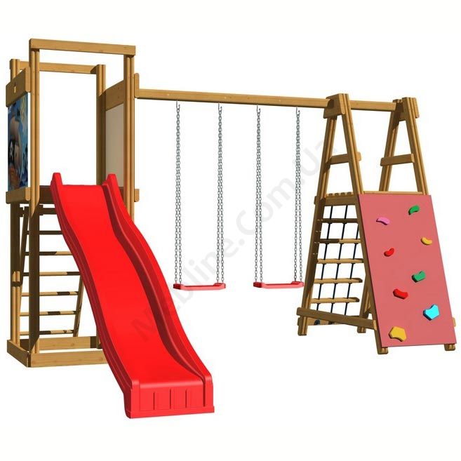 Дитячий ігровий комплекс для вулиці з гіркою та гойдалками.
