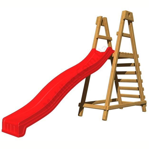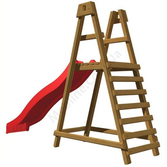 Дитяча гірка з дерев’яним майданчиком.