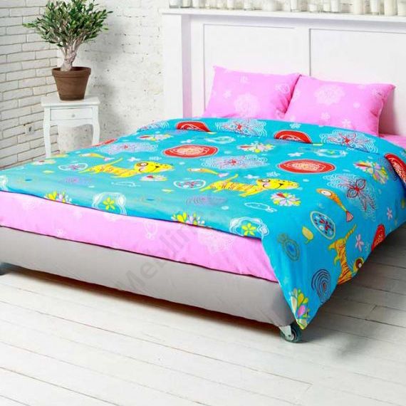 Комплект постільної білизни з бязі рожево-блакитний кольору.