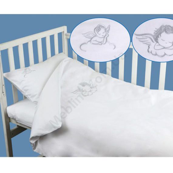 - На пододеяльнике и наволочках рисунок ангелочка.