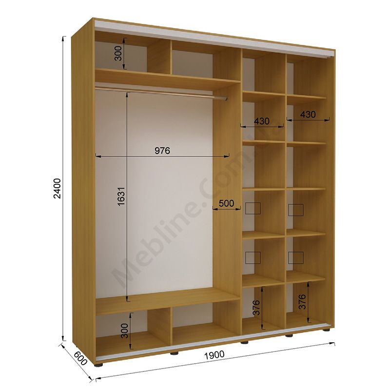 Дводверна шафа-купе шириною 190 см, глибиною 60 см, висотою 240 см