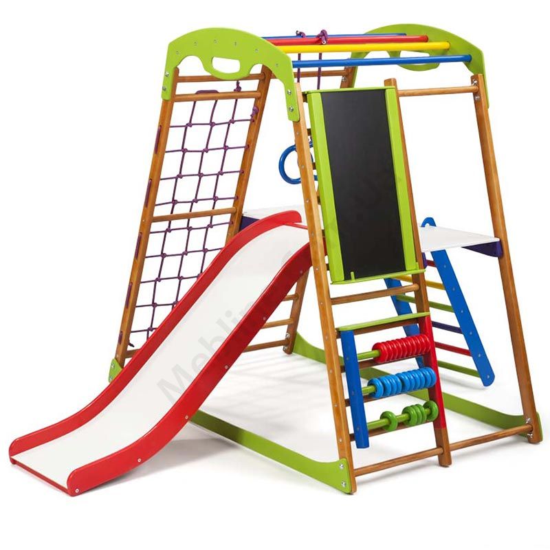 Дитячий спортивний комплекс для дому з гіркою та лазалками.