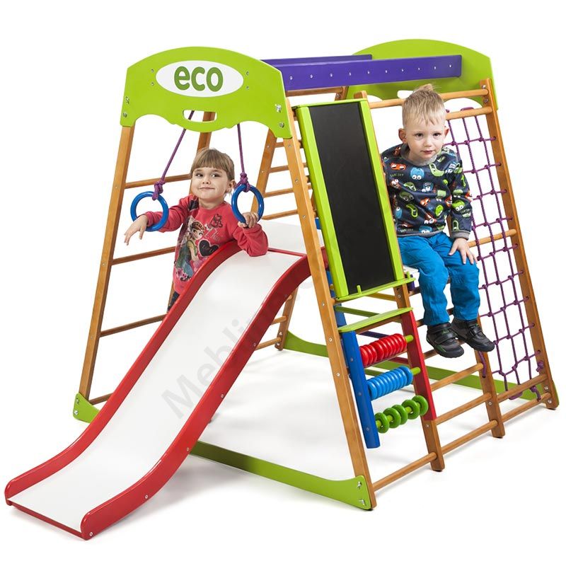 Дитячий спортивний комплекс для дому з гіркою та лазалками.