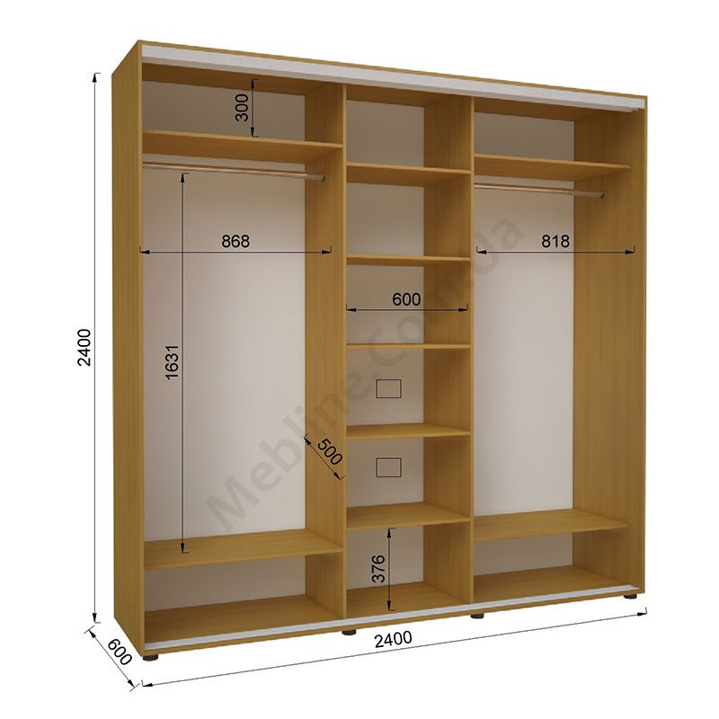 Тридверна шафа-купе шириною 240 см, глибиною 60 см, висотою 240 см