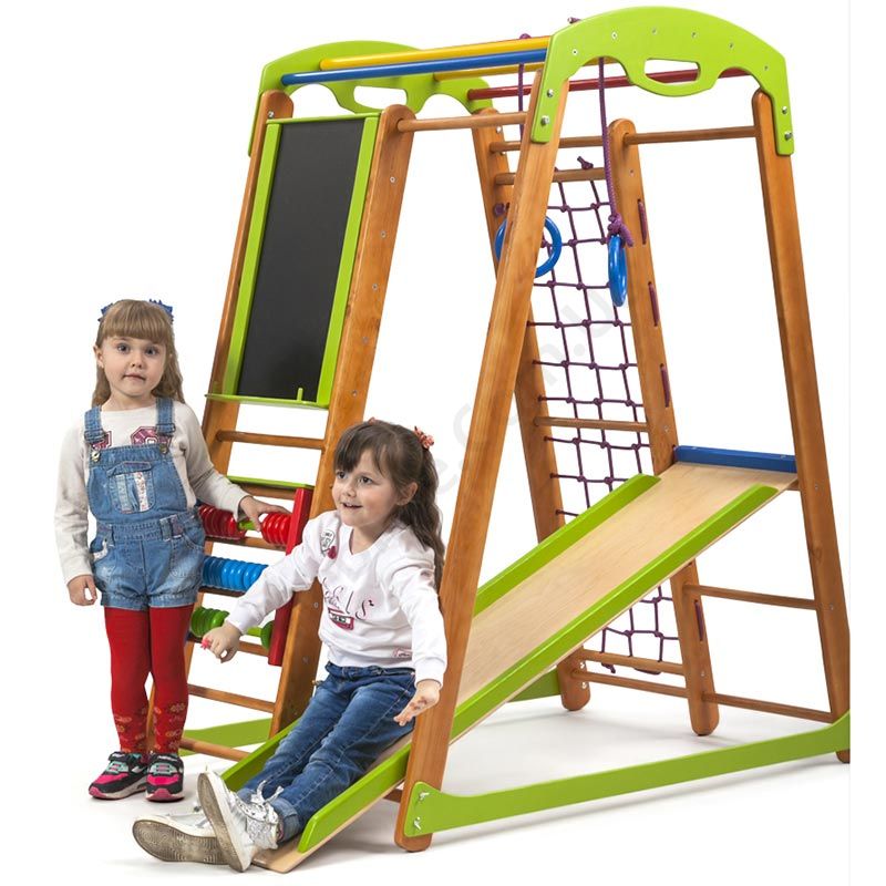 Дитячий спортивний комплекс для дому з гіркою та лазалками.
