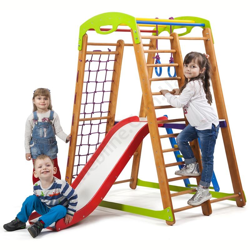 Дитячий спортивний комплекс для дому з гіркою та лазалками.