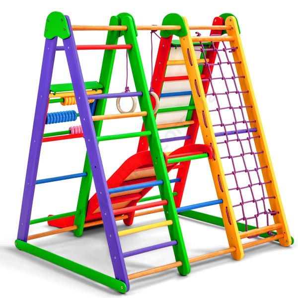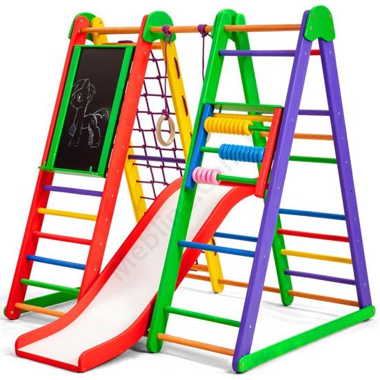 Дитячий спортивний комплекс для дому з гіркою та шведською стінкою.