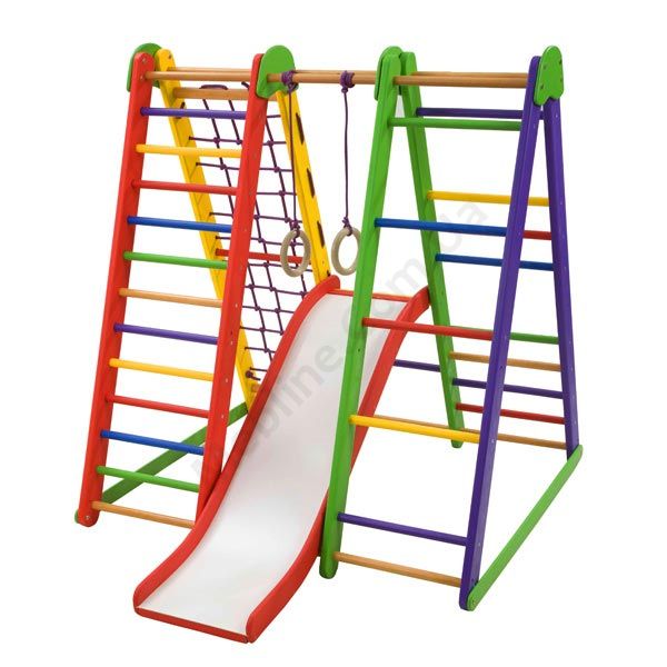 Дитячий спортивний комплекс для дому з гіркою та шведською стінкою.