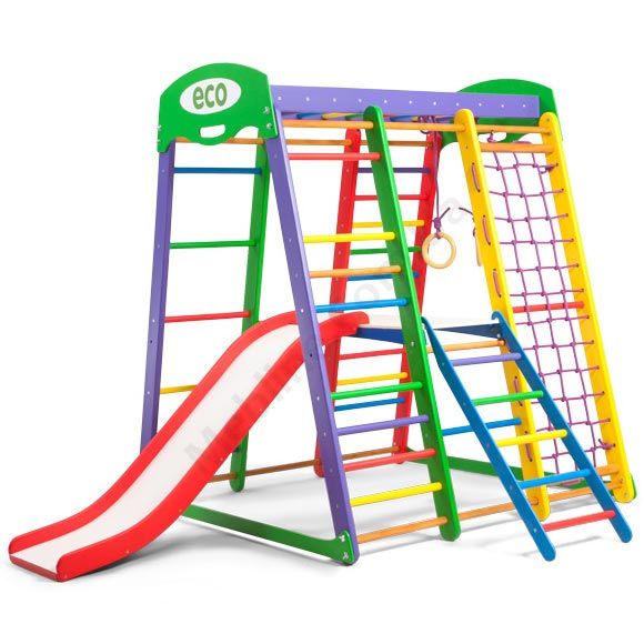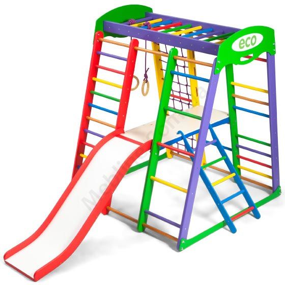 Дитячий спортивний комплекс для дому з гіркою та шведською стінкою.