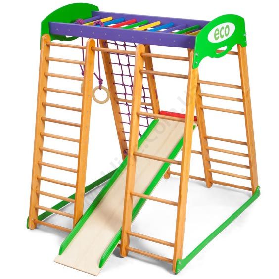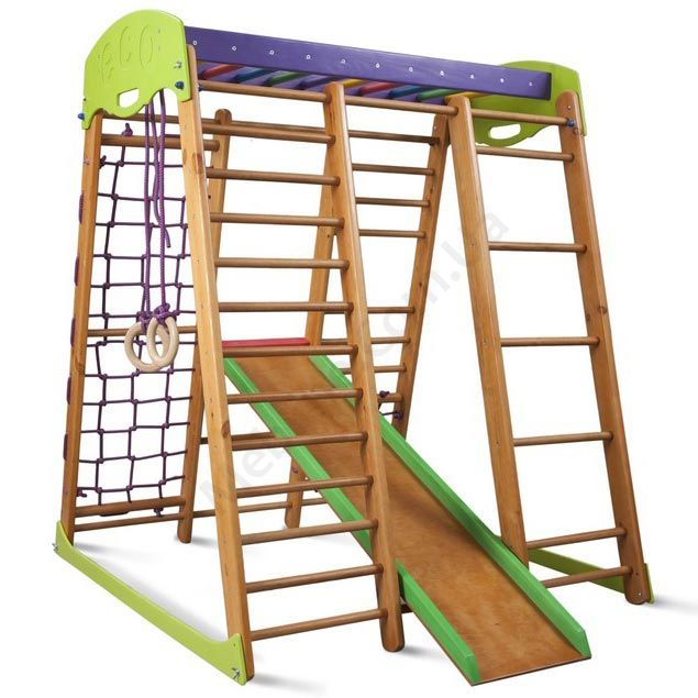 Дитячий спортивний комплекс для дому з гіркою та шведською стінкою.