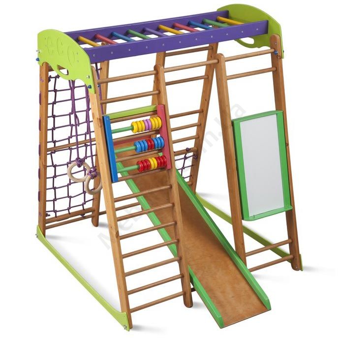 Дитячий спортивний комплекс для дому з гіркою та шведською стінкою.