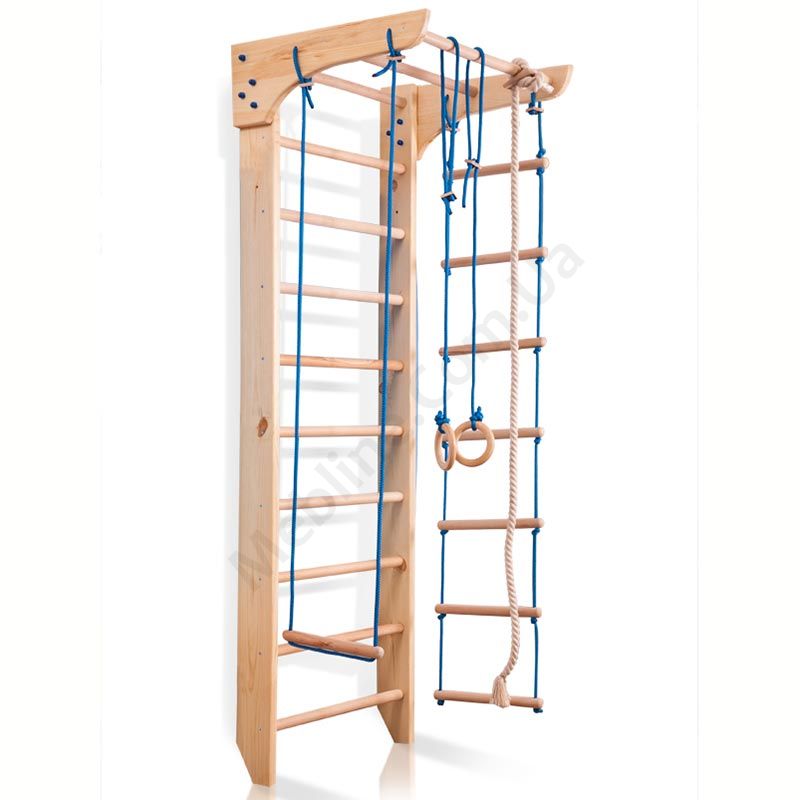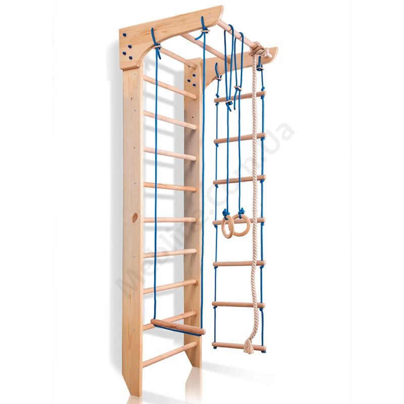 Шведська стінка з турником, канатом та мотузяними сходами.
