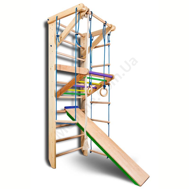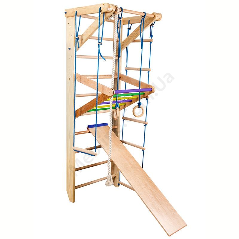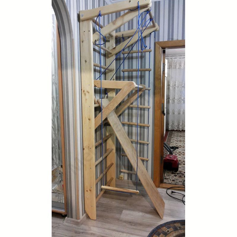 Шведська стінка з турником, канатом та дошкою для преса.