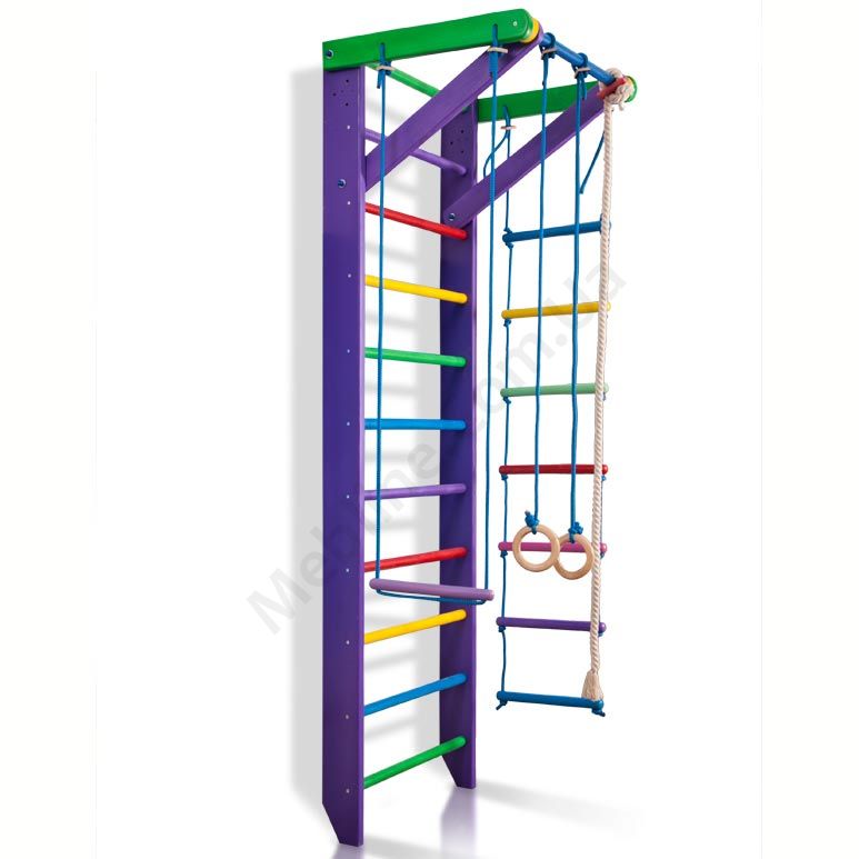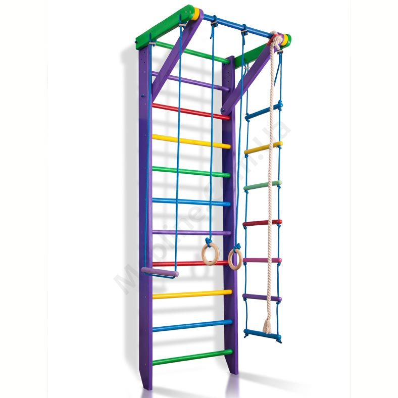 Шведська стінка з турником, канатом та мотузяними сходами.