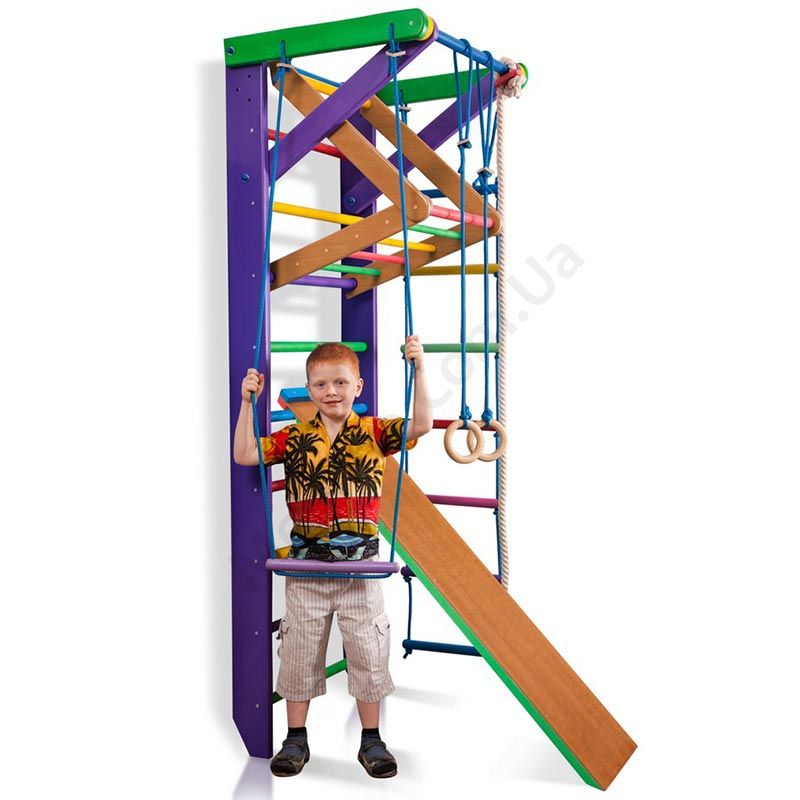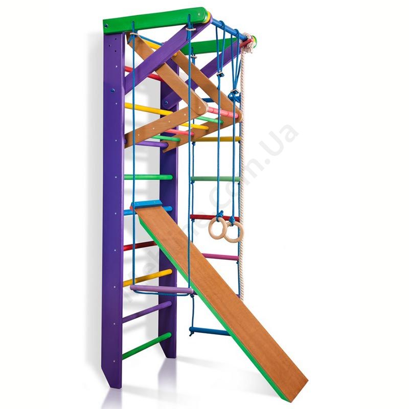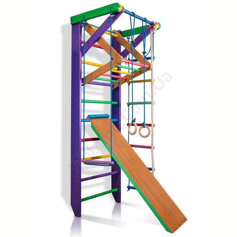 Шведська стінка з турником, канатом та мотузяними сходами.