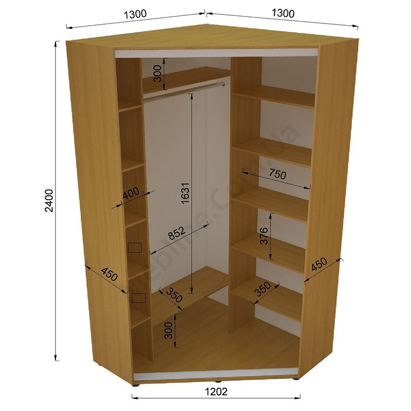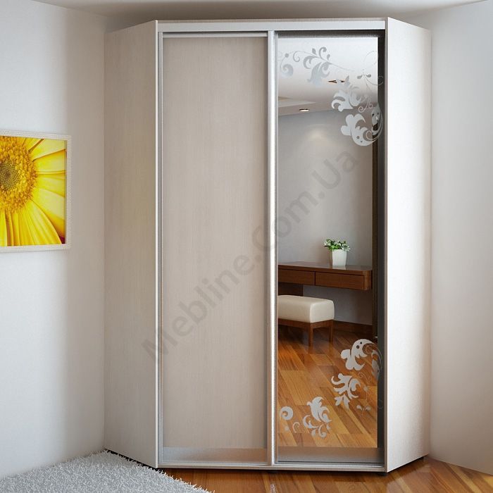 Кутова шафа-купе шириною 130 см, глибиною 130 см, висотою 240 см