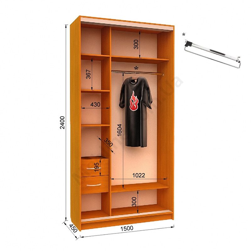 Дводверна шафа-купе шириною 150 см, глибиною 60 см, висотою 240 см