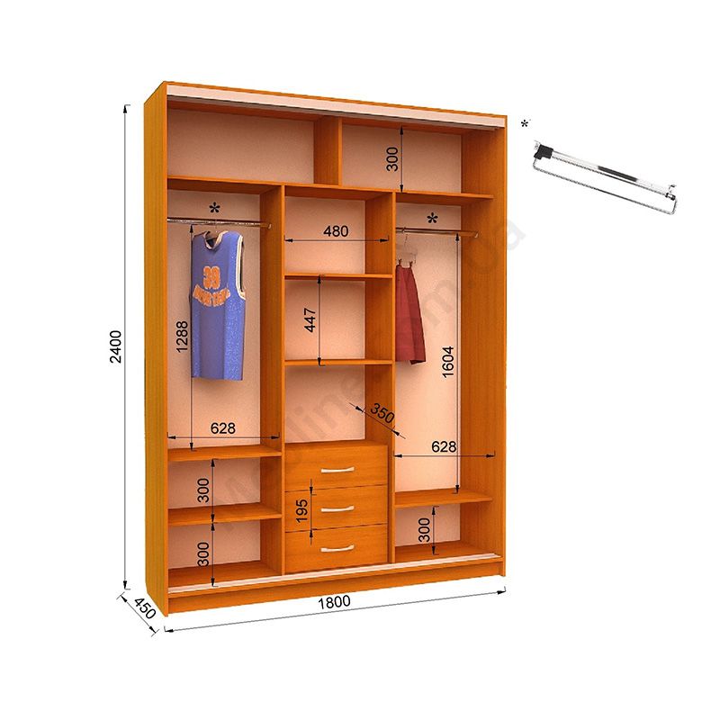 Тридверна шафа-купе шириною 180 см, глибиною 60 см, висотою 240 см