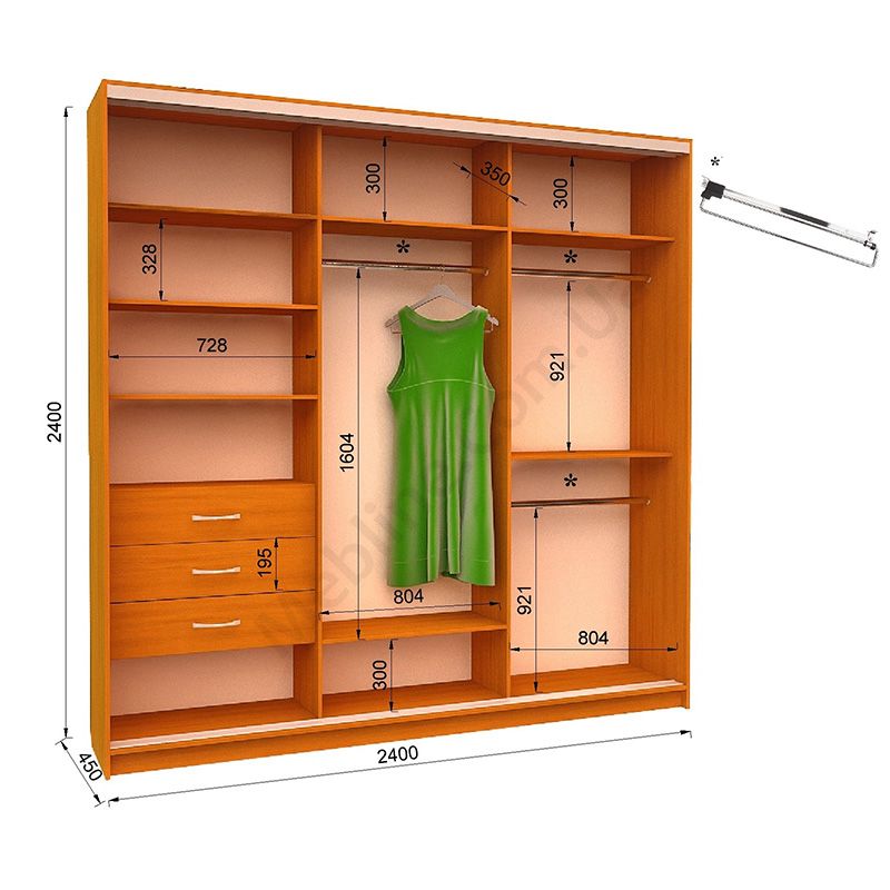 Тридверна шафа-купе шириною 240 см, глибиною 60 см, висотою 240 см