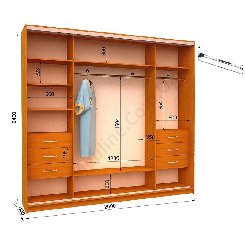Чотиридверна шафа-купе шириною 260 см, глибиною 60 см, висотою 240 см
