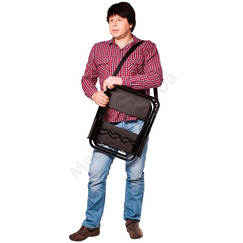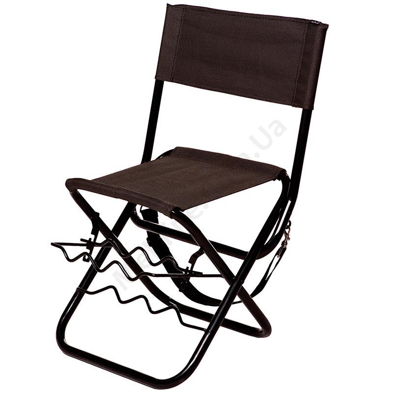 Складаний рибальський стілець зі спинкою та підставкою для вудилищ.