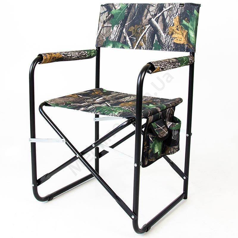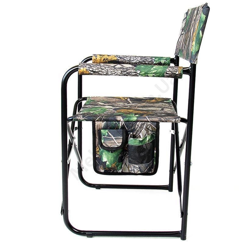 Складаний стілець зі спинкою, підлокітниками та кишенями.