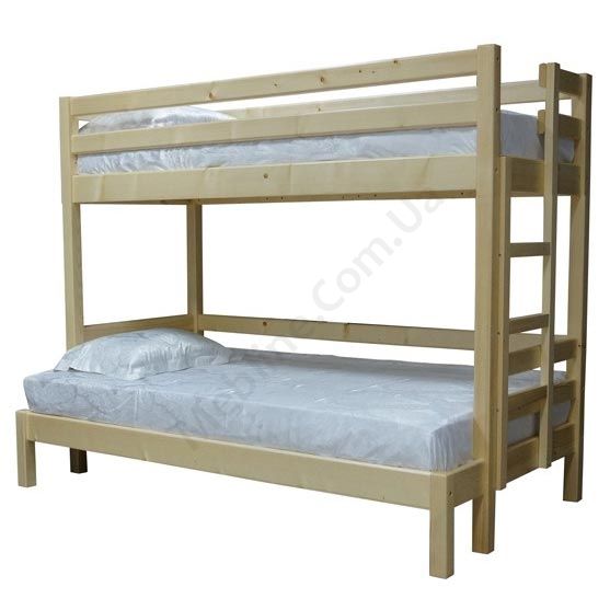 Двох’ярусне ліжко на ніжках з натурального дерева із захисним бортиком та сходами.