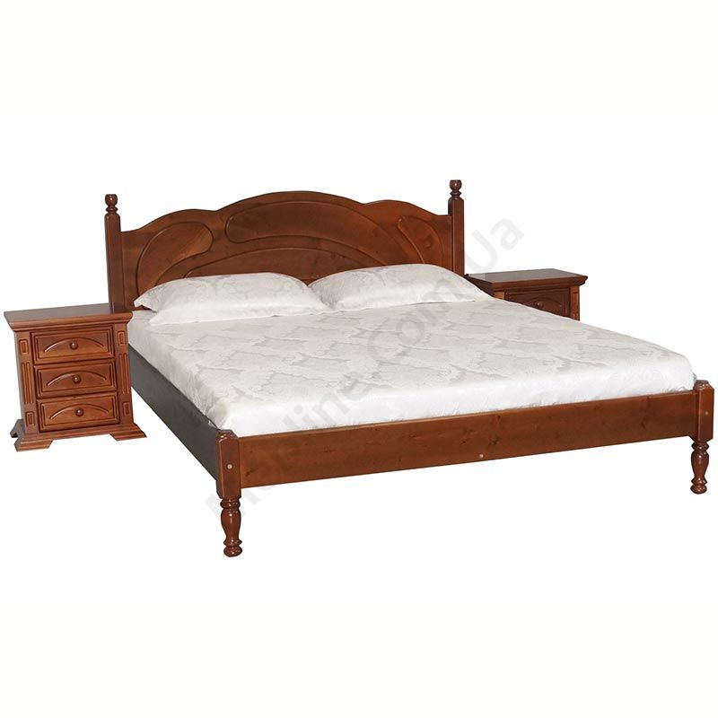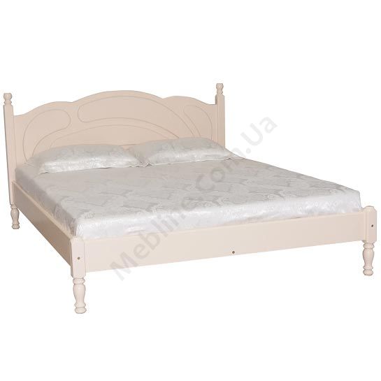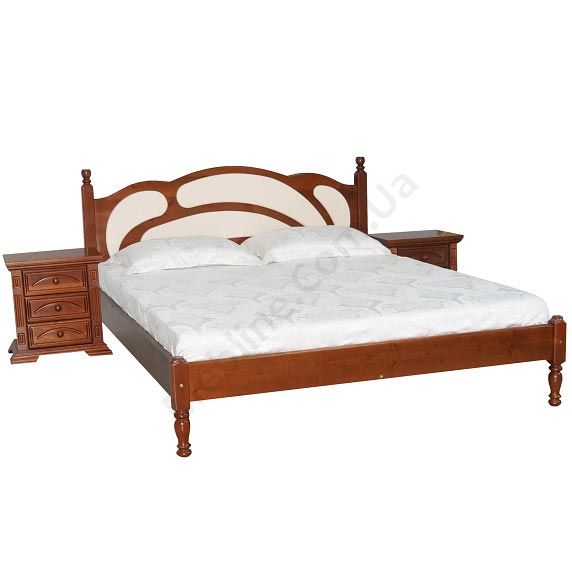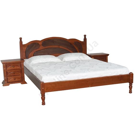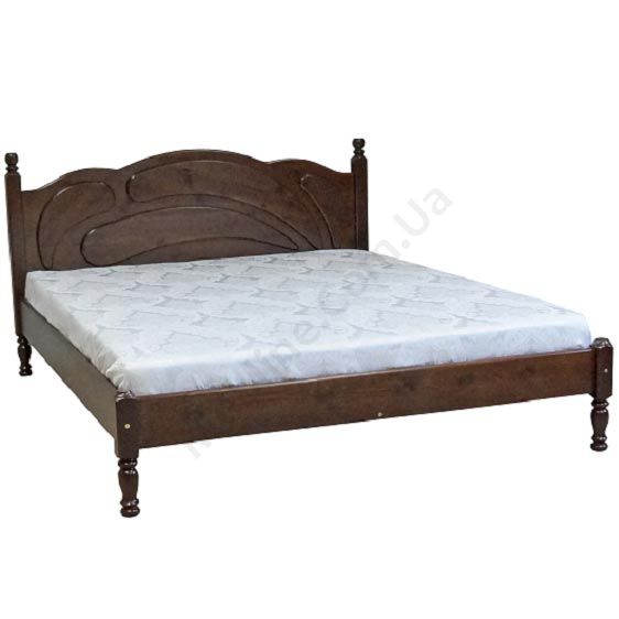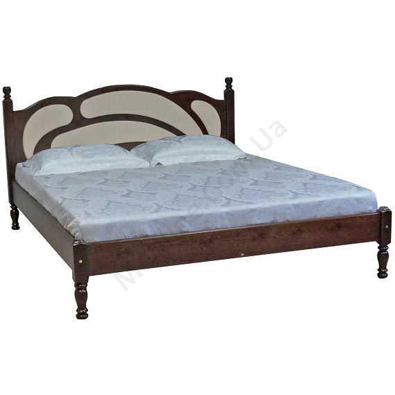 Двоспальне дерев’яне ліжко на ніжках з изящным узголів’ям.
