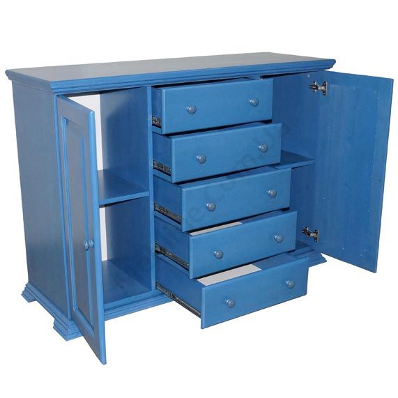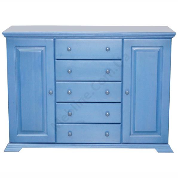 Комод з натурального дерева з висувними шухлядами та дверцятами.