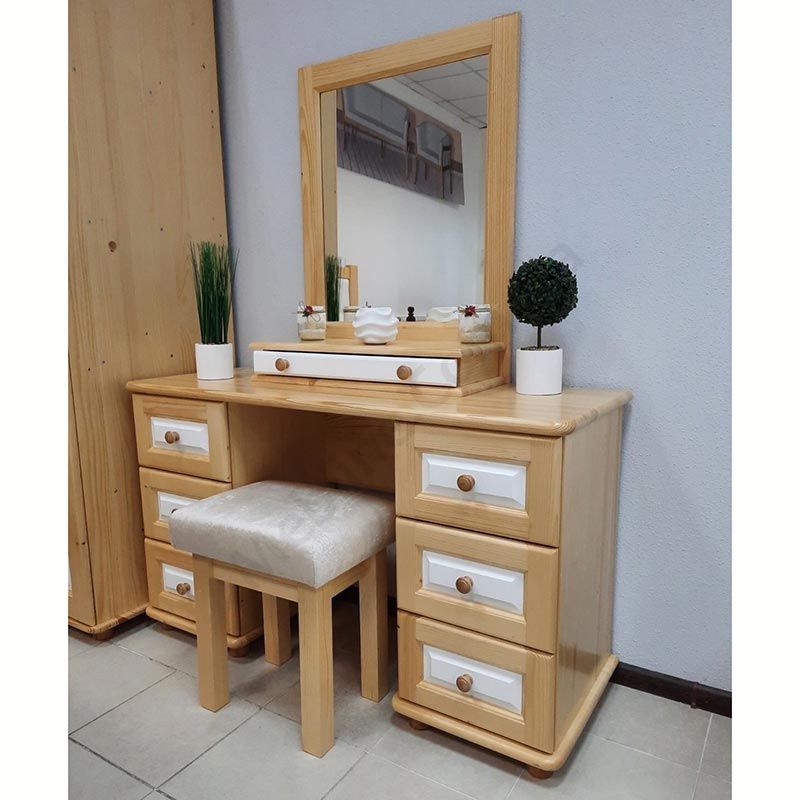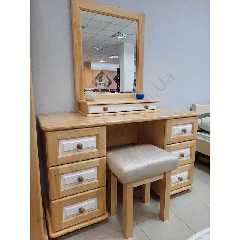 Туалетний столик з натурального дерева з дзеркалом та висувними шухлядами.