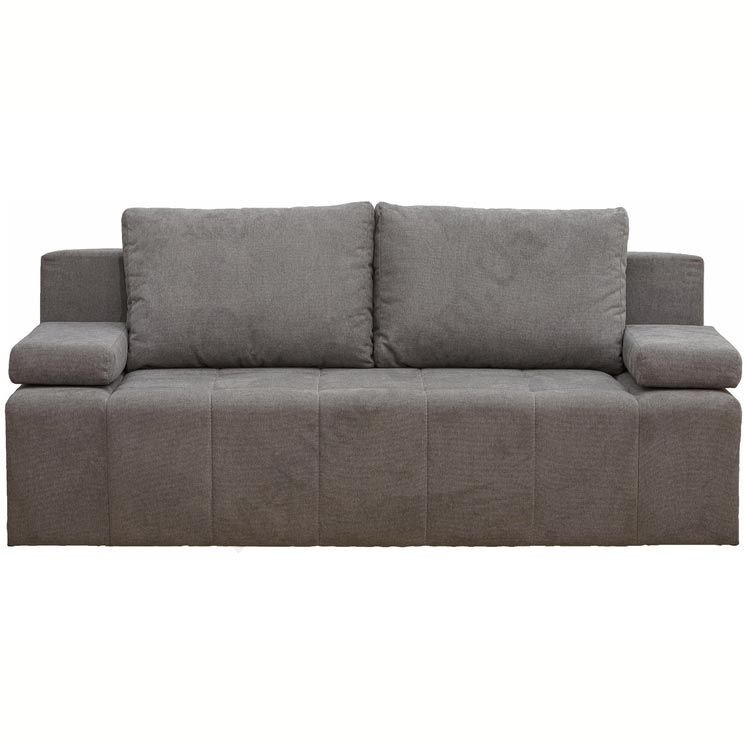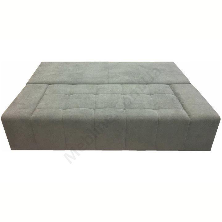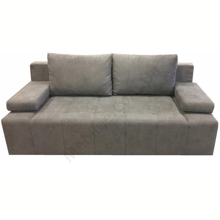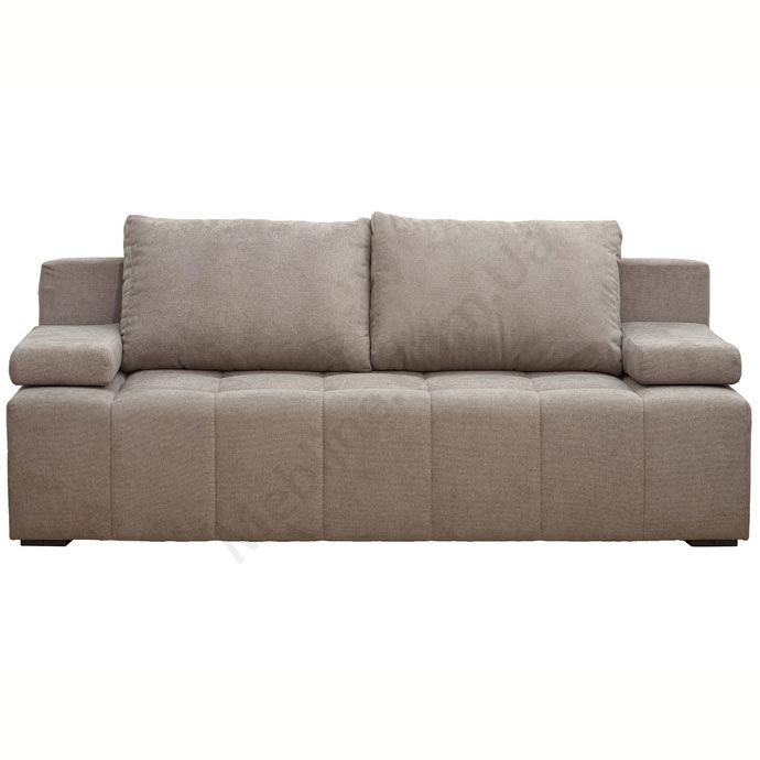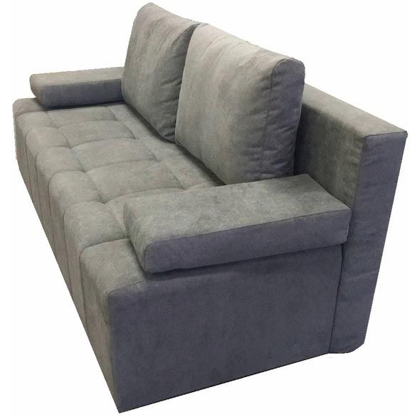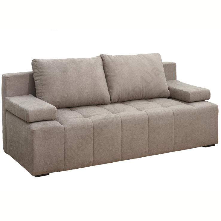 Тримісний прямий диван з м’якою тканинною оббивкою.