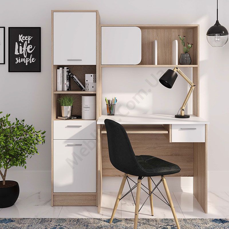 Комп’ютерний стіл з надбудовою і шухлядою.