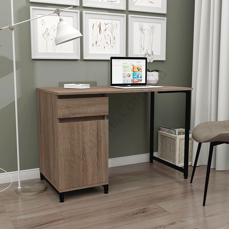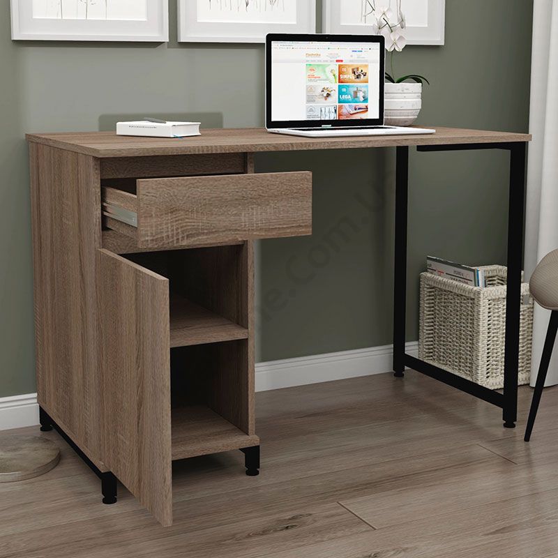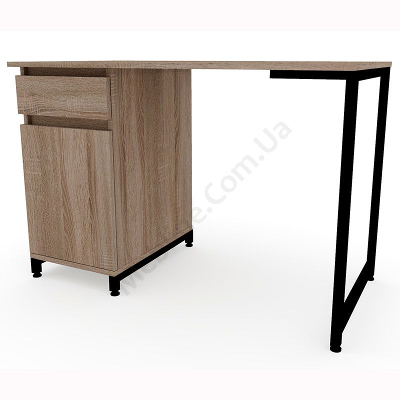 Стільниця виконана з ламінованої ДСП Swiss Krono, завтовшки 16 мм.ДСП має високу щільність, екологічна безпека класу Е1.Протиударна кромка ПВХ, завтовшки 0, 5 та 1 мм.Корпус — металева труба 25х25 мм, товщина стінок 1, 5 мм.Одні розпашні дверцята та висувна шухляда.За дверцятами два відділення.Шухляда на телескопічних напрямних (450 мм) DC.Підійде для приміщень у стилі лофт.
