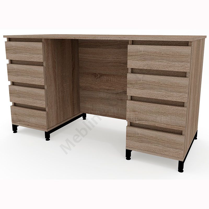 Стільниця виконана з ламінованої ДСП Swiss Krono, завтовшки 16 мм.ДСП має високу щільність, екологічна безпека класу Е1.Протиударна кромка ПВХ, завтовшки 0, 5 та 1 мм.Корпус — металева труба 25х25 мм, товщина стінок 1, 5 мм.Вісім висувних шухляд.Шухляди на телескопічних напрямних (450 мм) DC.Металеві ніжки.Підійде для приміщень у стилі лофт.