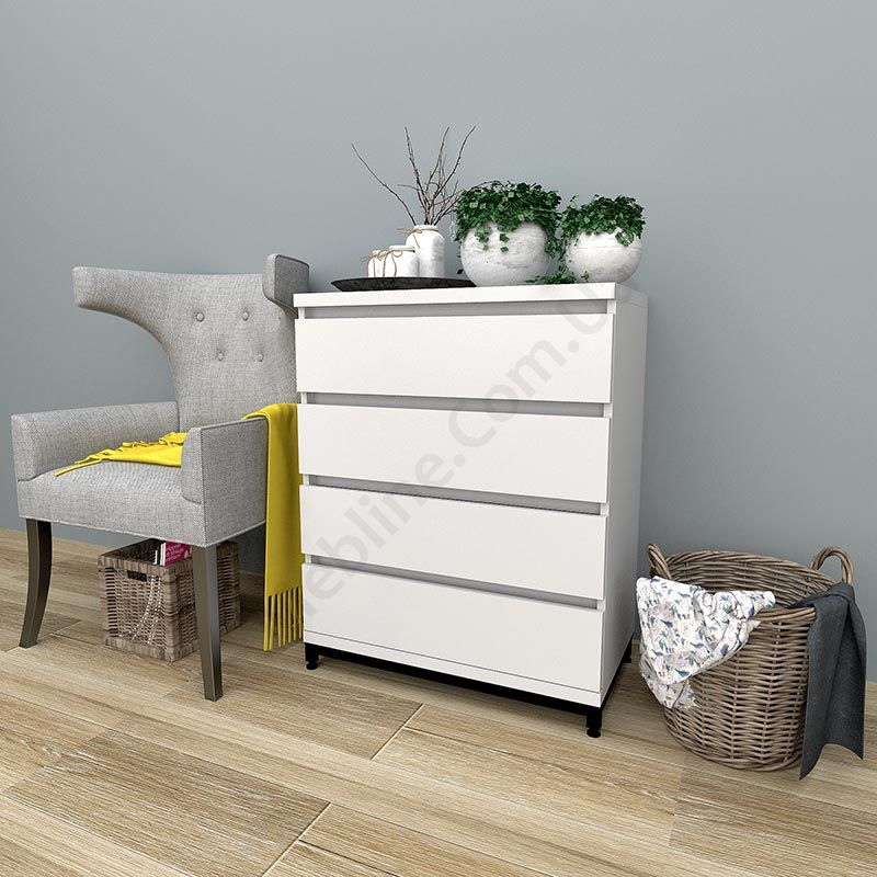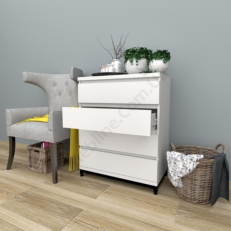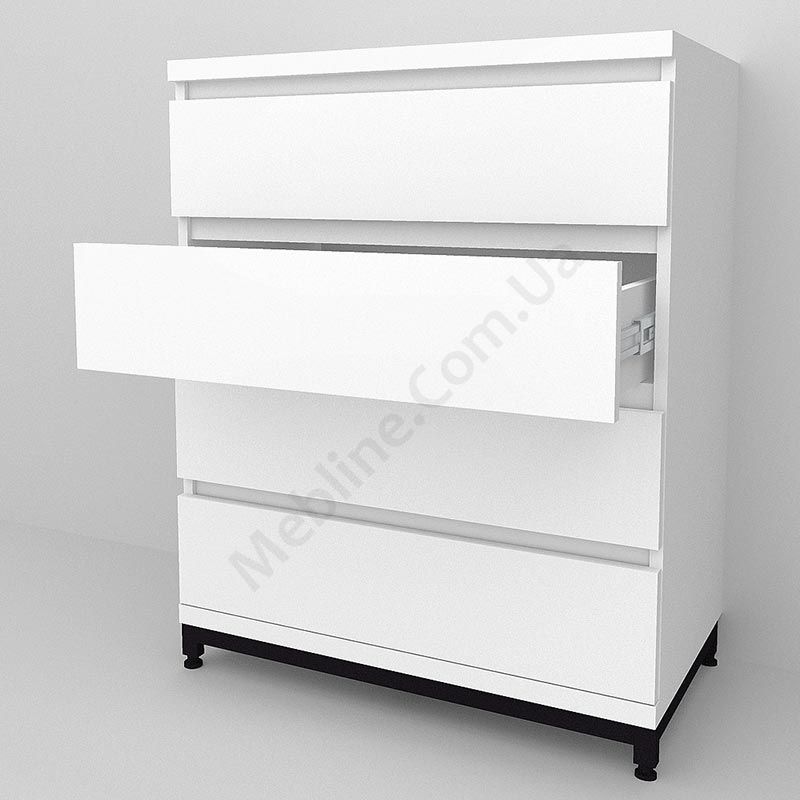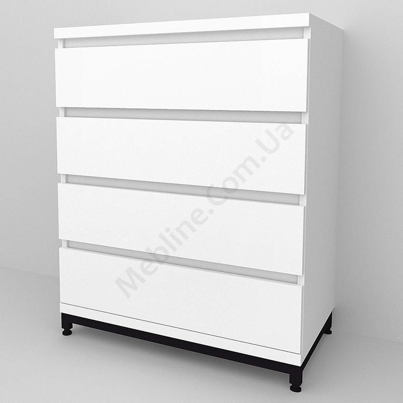 Виконаний з ламінованої ДСП Swiss Krono, завтовшки 32 мм.ДСП має високу щільність, екологічна безпека класу Е1.Протиударна кромка ПВХ, завтовшки 2 мм.Корпус — металева труба 25х25 мм, товщина стінок 1, 5 мм.Чотири висувні шухляди.Шухляди на телескопічних напрямних (400 мм) DC.Металеві ніжки.Підійде для приміщень у стилі лофт.